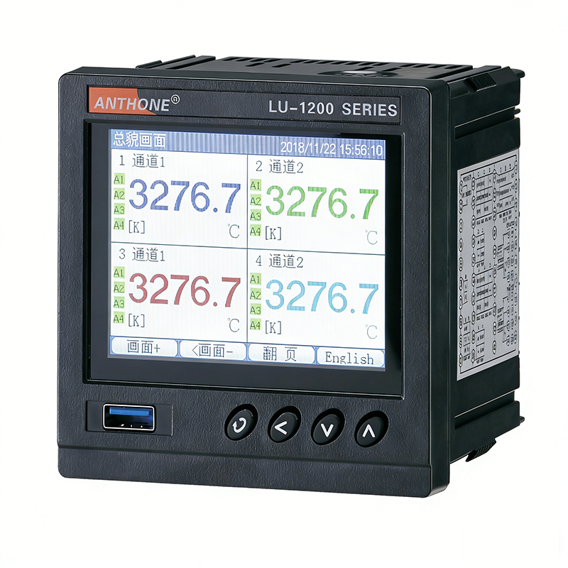 LU-R1200 系列智能无纸记录仪集记录与控制于一身,具有全切换万能输入:热电偶、热电阻、标准电压和标准电流等信号;输出控制方式有 PID 控制、位式控制、自整定控制和手动控制等。LU-R1200 可以接入 1 至 2 路 PID 控制或 1 至 4 路信号输入,每个控制板有独立的信号输入、主输出和报警输出,输入与输出完全隔离。可编程 PID 控制,程序控制曲线最多可达 100 段。可提供馈电输出。